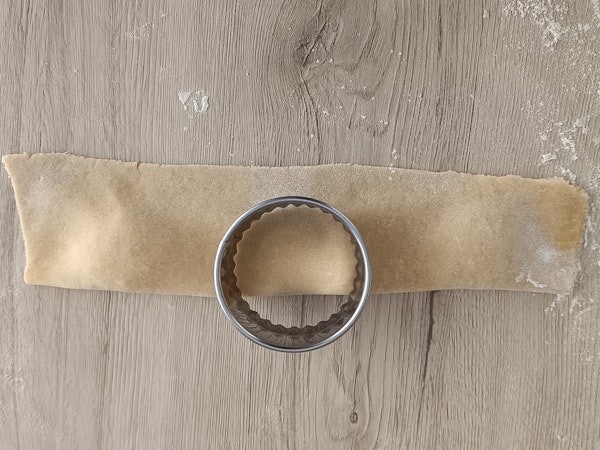 Stendi l’impasto con un mattarello fino a uno spessore di circa 2 mm.